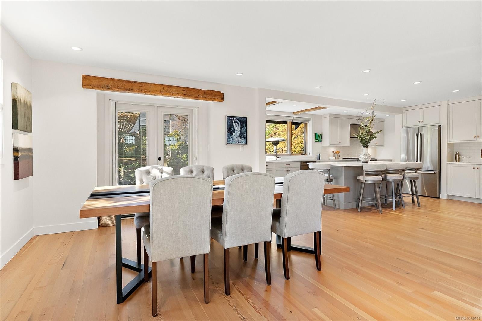Gorgeous executive home in coveted South Oak Bay, et on a quiet, tree-lined street just steps from the beach. Completely reimagined with exceptional craftsmanship and a no-expense-spared approach, this residence must be experienced to be fully appreciated. Distinctive details include a custom fireplace by Eckerman Studios, 200-year-old Pennsylvania oak beams, a barrel-vaulted ceiling, and striking staircase crafted from Haida Gwaii cedar. Designed for refined living & effortless entertaining, main level features bright open spaces and a chef’s kitchen with premium Miele appliances, flowing seamlessly to west-facing backyard with heated outdoor dining area, landscaped gardens, deck & private hot tub. Extensive 2022 upgrades include electrical, hot water on demand, radiant in-floor heating, and A/C in primary suite. Serene top floor primary retreat offers spa-inspired bath, walk-in closet with 2nd laundry & private deck. Lower level includes a cozy media room & additional bedrooms.