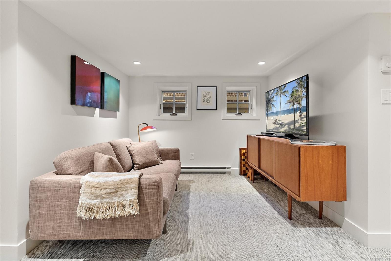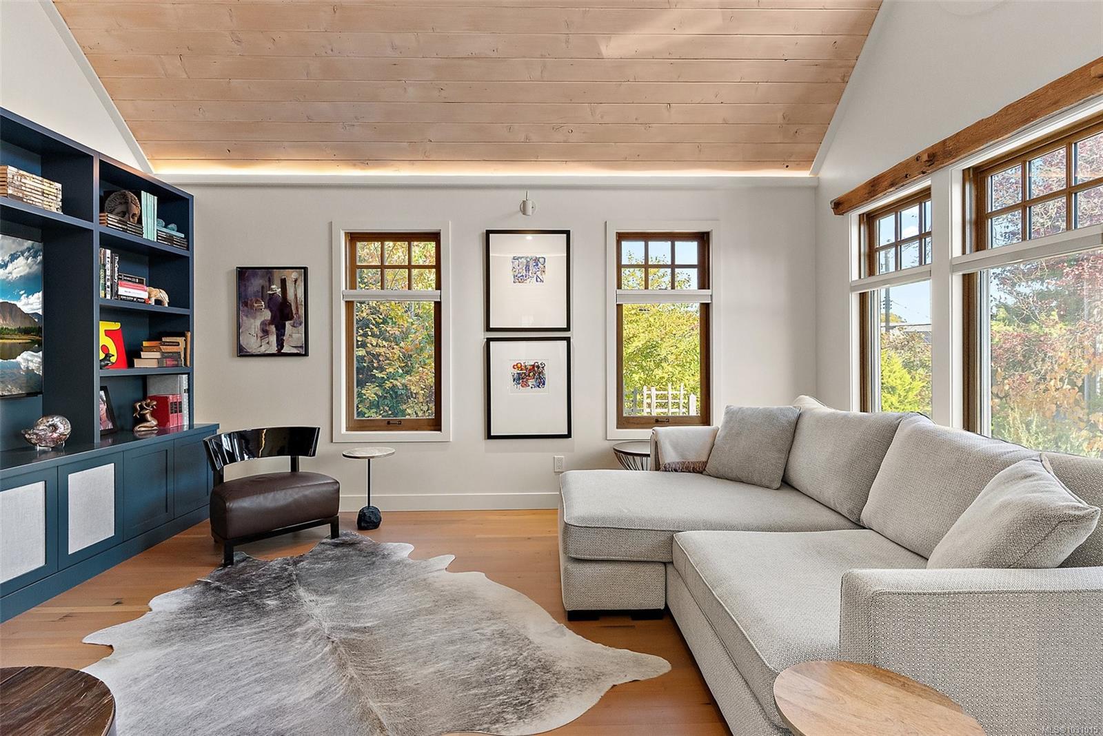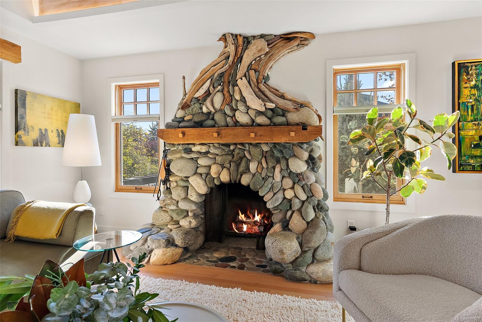 Gorgeous executive home in coveted South Oak Bay, set on a quiet, tree-lined street just steps to the beach. Now offered at a new price, this is exceptional value for the calibre of construction, design, and finishing—truly a must-see to fully appreciate. Completely reimagined with a no-expense-spared approach, the home showcases remarkable craftsmanship and curated detail throughout. Standout features include a custom fireplace by Eckerman Studios, 200-year-old Pennsylvania oak beams, a barrel-vaulted ceiling, and a striking staircase crafted from Haida Gwaii cedar. Designed for refined living and effortless entertaining, the main level offers bright, open spaces and a chef’s kitchen with premium Miele appliances, flowing seamlessly to a west-facing backyard. The outdoor setting is equally impressive, with a heated dining area, beautifully landscaped gardens just coming into bloom for spring, a spacious deck, and private hot tub—your own tranquil retreat. Extensive 2022 upgrades include electrical, hot water on demand, radiant in-floor heating, and A/C in the primary suite. The serene top-floor primary retreat features a spa-inspired bath, walk-in closet with second laundry, and a private deck. The lower level offers a cozy media room, wind storage and 2 additional bedrooms for family or guests.